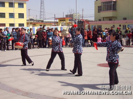 为丰富群众春节期间的文化活动,唐海县三农场精心准备,从腊月二十三开始至正月十五,为群众安排了喜闻乐见的文艺节目。图为廉政文化志愿者在文化广场上正在演出自编自演的三句半《欢天喜地迎牛年》。杨文海 丁喜兵摄