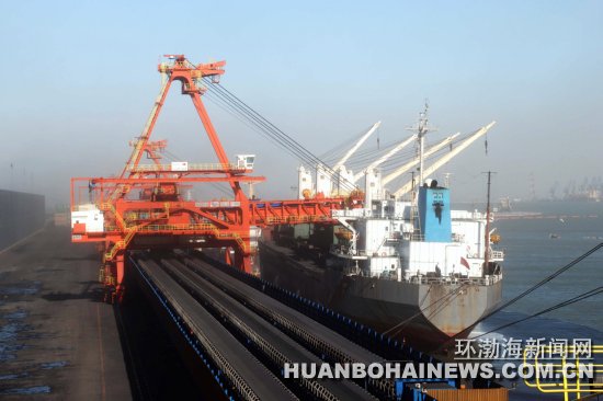 曹妃甸煤炭码头正在进行装船作业,大量煤炭从这里源源不断运往南方。本报记者宝东李响摄