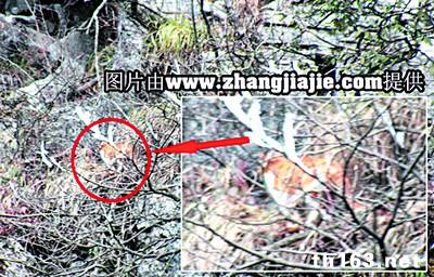2月18日下午,张家界某旅行社主管覃雯在天门山景区发现金黄色的野生动物后,当即拍下了两张照片。为探明野生动物真相,2月19日,张家界市林业局、天门山国家森林公园管理处有关专家和该旅行社工作人员覃雯、王力黑一道前往天门山考证。