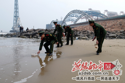 边检官兵净化海滩迎“五四”