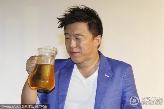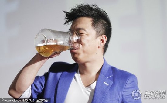 黄渤举“缸”喝啤酒 一口下去眼神迷离