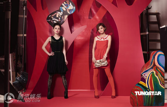 Twins拍广告频换丝袜 阿Sa抹胸裙裸肩玩性感