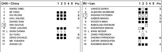中国女排世界排名第五,伊朗女排世界排名第80,中国队历史上从来没有输给过弱旅伊朗,双方最近一次过招出现在2011年亚锦赛,当时俞家军以替补阵容3比0轻取对手。此役中国女排的首发阵容是:主攻惠若琪、楚金玲,副攻徐云丽、杨珺菁、二传米扬、接应曾春蕾,自由人单丹娜。伊朗队都是业余球员组成,由于宗教信仰的原因都包着头巾比赛。