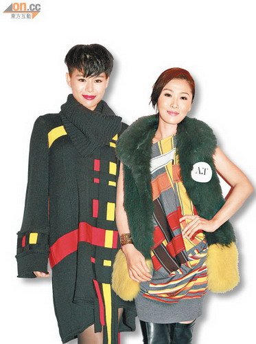 胡杏儿(微博)与周丽淇(微博)(右)齐齐出席时装秀试新装