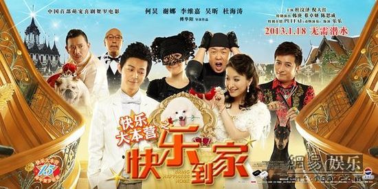 网易娱乐1月15日报道1月15日上映的萌宠贺岁片《快乐大本营之快乐到家》,由湖南卫视、广东百合蓝色火焰文化传媒、北京乾坤星光文化传媒联合出品,是快乐大本营十五周年隆重推出的一部贺岁巨献,“快乐家族”的五位快本大咖何炅、谢娜、李维嘉、吴昕、杜海涛,加之杜汶泽、倪大红、蔡卓妍、韩庚、陈思成等一众搞笑明星在2013年开年贺岁档大银幕上,共同上演的一出爆笑连连的“狗在囧途”故事。
