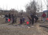 一棵棵小树苗在大家的共同努力下被载到了富饶的土地上,希望这些小树苗快快长大,为美化环境、保持水土贡献力量。