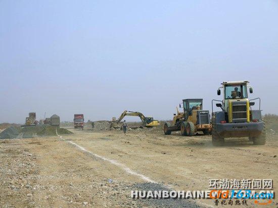 图为道路施工单位正在占地4600多亩地的河北联合大学新校址建设第一条大道——渤海大道。
