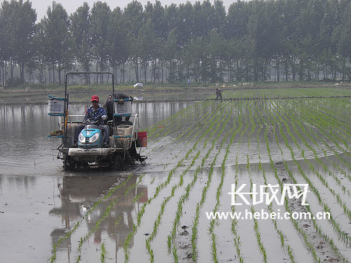 曹妃甸四农场水稻种植2万亩 机械化插秧达100%