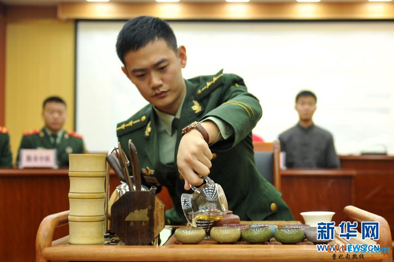 曹妃甸边检站官兵进行茶艺展示表演赛