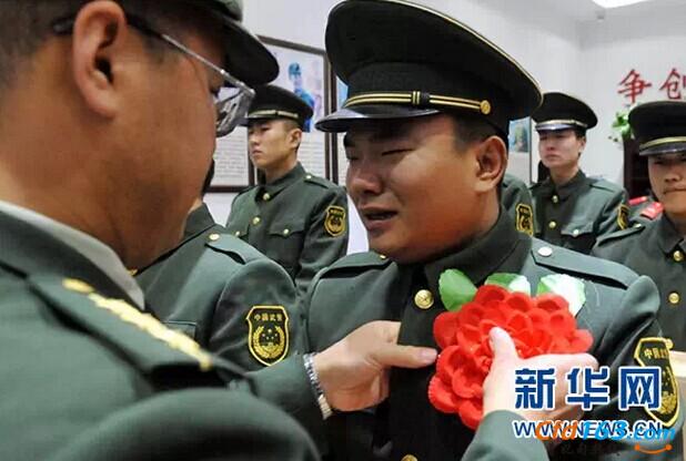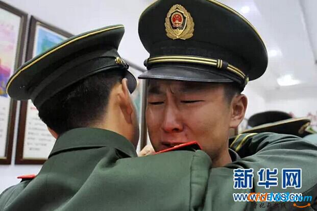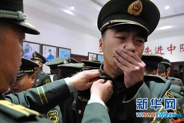 退伍老兵在卸下警衔时流下不舍的泪水
