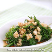 蒜香辣拌皇席菜 皇席菜我们民间称作蓬蓬菜,此菜专长于盐碱地。此菜好像还被老人们称作救命草,可包水饺,凉拌,炒,做龙须饼都非常好吃。