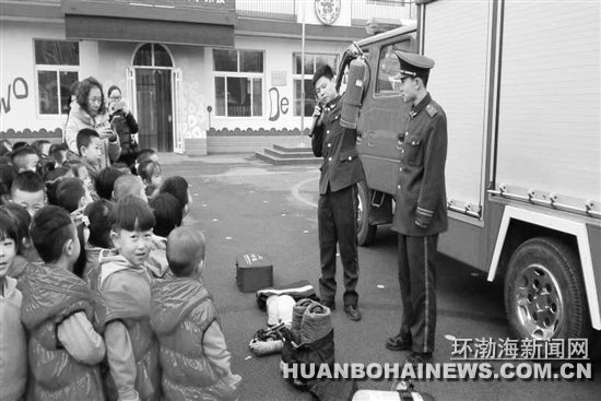 唐海消防大队官兵到曹妃甸第二幼儿园宣传消防知识